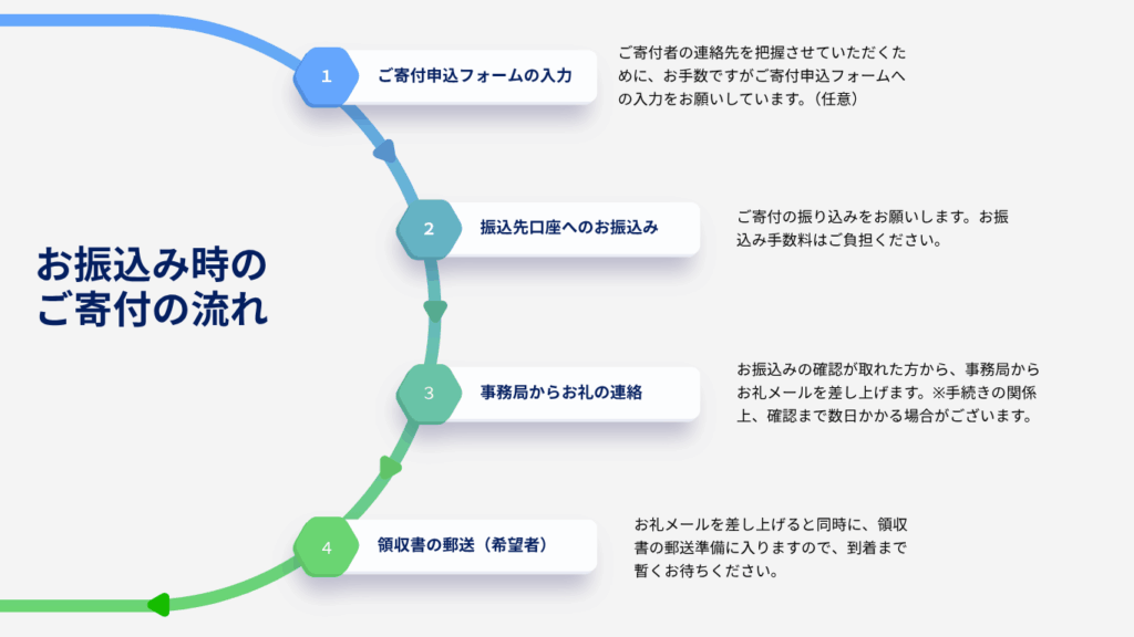 ※お振込手数料については、ご寄付者様のご負担になります。